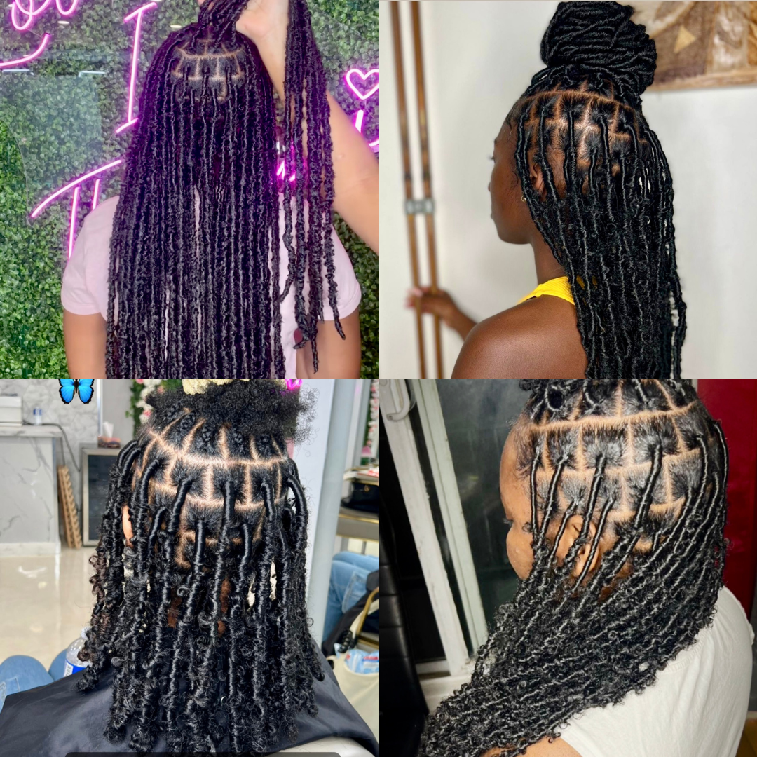 Step into versatility with our long-lasting and protective locs styles. Choose from a range of options including soft locs, distressed locs, butterfly locs, and Baja locs (boho soft locs). A touch-up service is offered as needed. Hair can be provided upon request (discuss prior to booking). Book now for a transformative style that lasts.